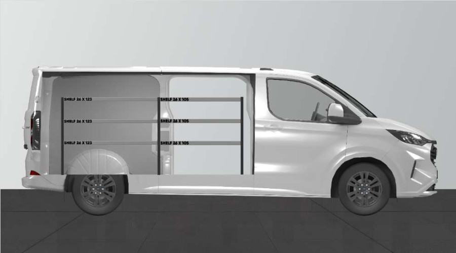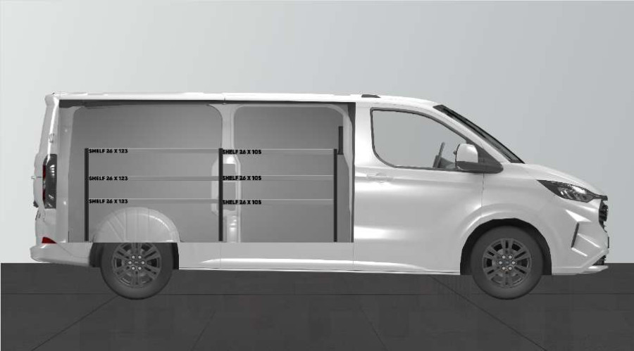 En bilinredning för den som vill bevara bredden i sin Ford Custom & VW Transporter L2. Inredningen är endast 262,5mm djup och möjliggör bra förvaringsmöjligheter för det mindre sortimentet så som förpackningar med skruvar och mindre produkter till fastighetsskötare, elektriker och VVS-are. Det finns möjlighet att komplettera inredningen med våra smarta modulbackar. Att komplettera gaveln med vår smartbox är också ett populärt alternativ för att maximera förvaringsutrymmet.