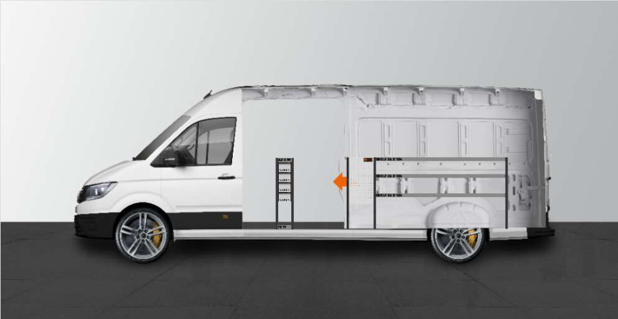 En bilinredning med lättåtkomliga lådor för smidigare arbete i Man TGE & VW Crafter L4