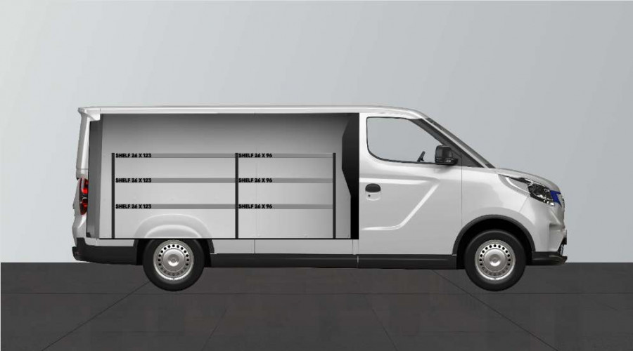 En bilinredning för den som vill bevara bredden i sin Maxus e-Deliver 3 L2. Inredningen är endast 262,5mm djup och möjliggör bra förvaringsmöjligheter för det mindre sortimentet så som förpackningar med skruvar och mindre produkter till fastighetsskötare, elektriker och VVS-are. Det finns möjlighet att komplettera inredningen med våra smarta modulbackar. Att komplettera gaveln med vår smartbox är också ett populärt alternativ för att maximera förvaringsutrymmet.