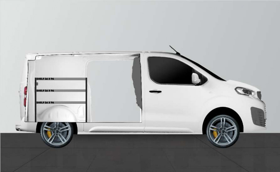 En kortare bilinredning för den som vill bevara bredden i sin Peugeot Expert, Citroën Jumpy, Opel Vivaro, Fiat Scudo & Toyota ProAce L2. Inredningen är 262,5mm djup och möjliggör bra förvaringsmöjligheter för det mindre sortimentet så som förpackningar med skruvar och mindre produkter till fastighetsskötare, elektriker och VVS-are. Inredningen passar till bilar både med och utan sidodörrar och det finns möjlighet att komplettera inredningen med våra smarta modulbackar. Att komplettera gaveln med vår smartbox är också ett populärt alternativ för att maximera förvaringsutrymmet.