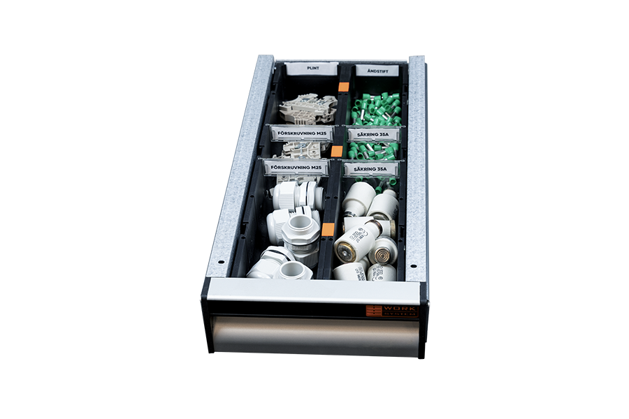 varje insatslåda och avdelare har ett etikettfack för att skapa de bästa förutsättningarna för ordning och reda i din transportbil.