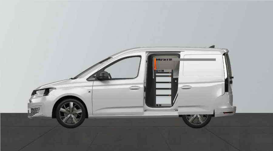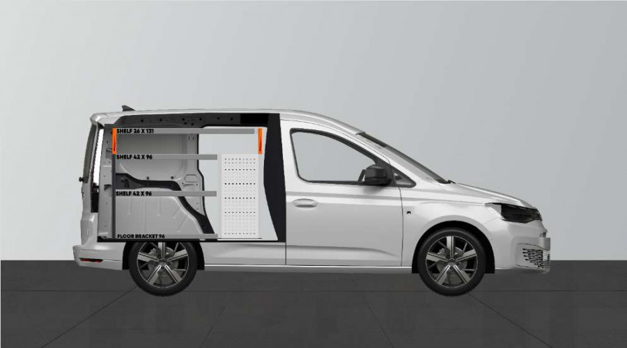 Med denna bilinredning får du mycket förvaring i både hyllor och lådor passande VW Caddy Cargo & Ford Connect L1.