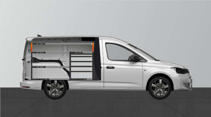 Med denna bilinredning får du mycket förvaring i både hyllor och lådor passande VW Caddy Cargo & Ford Connect L2.