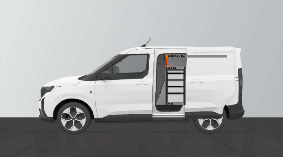 Med mix av lådor och hyllor är detta en mycket populär bilinredning som passar Ford Connect L2.
