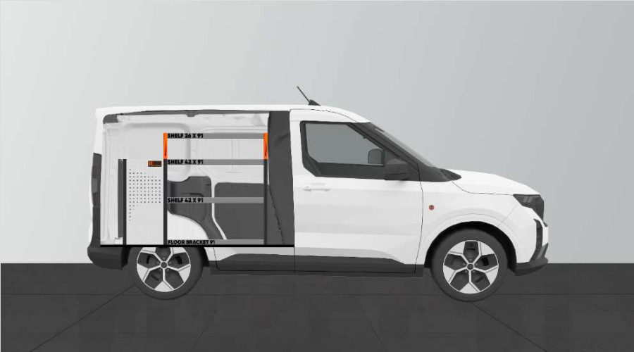 Med mix av lådor och hyllor är detta en mycket populär bilinredning som passar Ford Connect L2.