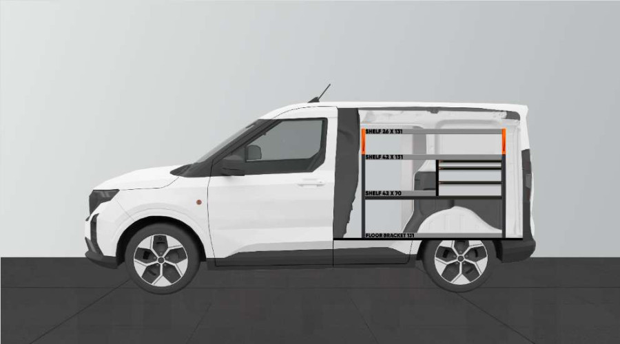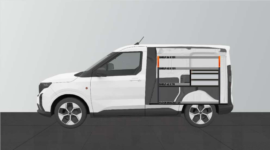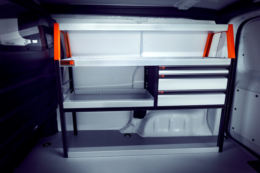 Med en mix av lådor och hyllor är detta en mycket populär bilinredning som passar Ford Courier L1.
