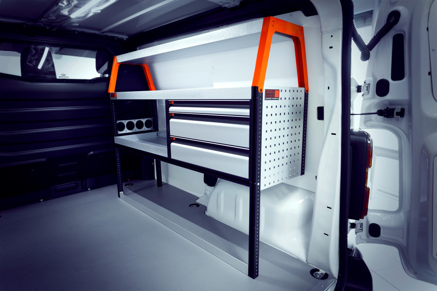 Inredning bred modell med smidig åtkomst av lådorna som passar Ford Transit Custom L2H1.