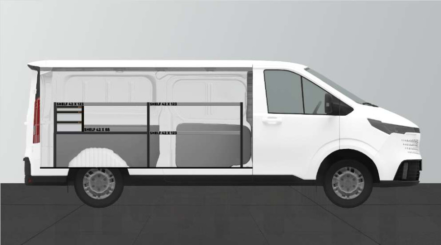 En enklare lösning av vår populära serviceinredning med både lådor och hyllor till MAXUS E-DELIVER 7.