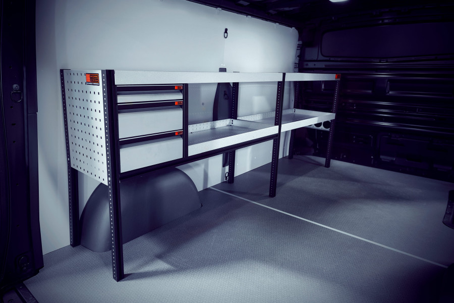 Ett priseffektivt alternativ för dig som har ett enklare behov av förvaring och vill ha en kombination av lådor på kullagerskenor men även hyllor till din MAXUS E-DELIVER 7 L2. Inredningen är 420mm djup vilket gör att de flesta av marknadens verktygsväskor passar perfekt. Lådorna är populära att komplettera med våra lådinsatser och avdelare vilka ger dig bra möjligheter att skapa ordning och reda för ditt mindre sortiment.