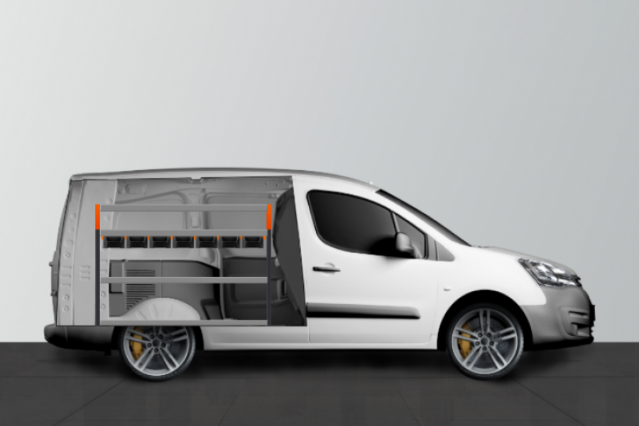 En bilinredning för dig som redan från början bestämt dig för att skapa bäst ordning och reda i din Citroen Berlingo & Peugeot Partner L2H1. I denna inredning ingår 7 st av våra nya, smarta modulbackar. Du kan smidigt dra ut dessa på våra modulbacks-skenor. Dessa är även smidiga att justera och flytta längs med hyllorna. Självklart ges det bra förvaringsmöjligheter även för dina verktygsväskor, maskiner och material då de djupa hyllorna är 420mm.