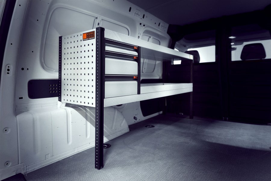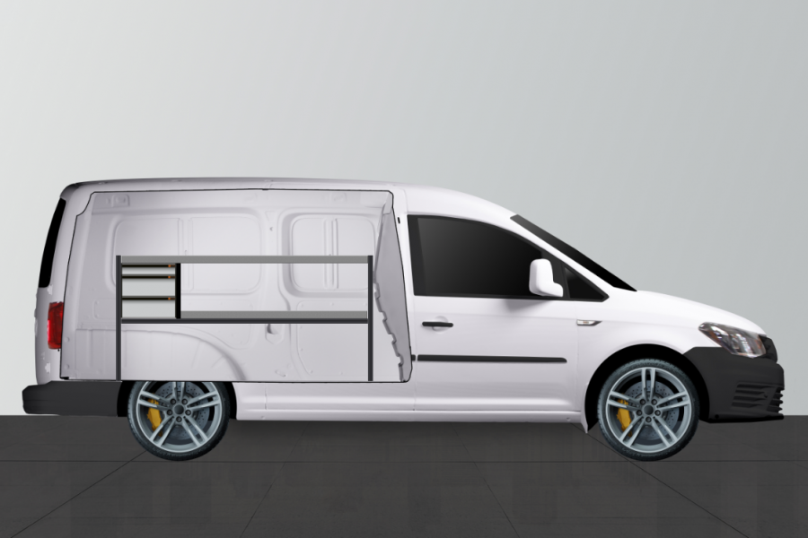 Endast fram till årsmodell 2020! En enklare lösning av vår populära serviceinredning med både lådor och hyllor till VW Caddy L2H1.