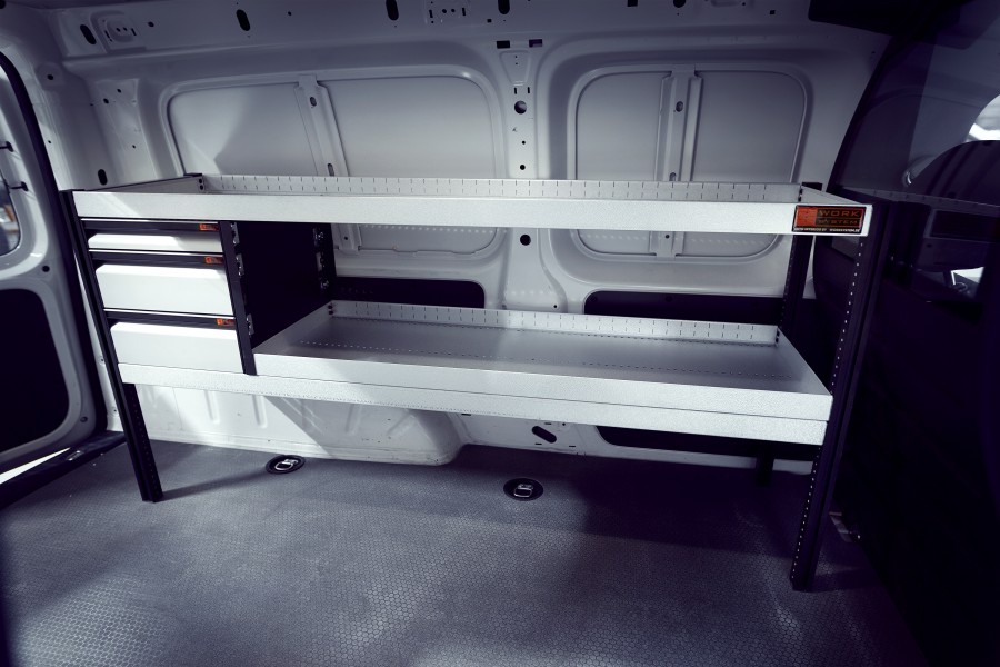 Ett billigt alternativ för dig som vill ha en kombination av lådor på kullagerskenor men även mycket förvaringsalternativ i form av hyllor till din VW Caddy Maxi. Inredningen är 420mm djup vilket gör att de flesta av marknadens verktygsväskor passar perfekt i hyllorna. Lådorna är populära att komplettera med våra nya sortimentlådor. Detta ger dig bra möjligheter att skapa ordning och reda på ditt mindre sortiment.
