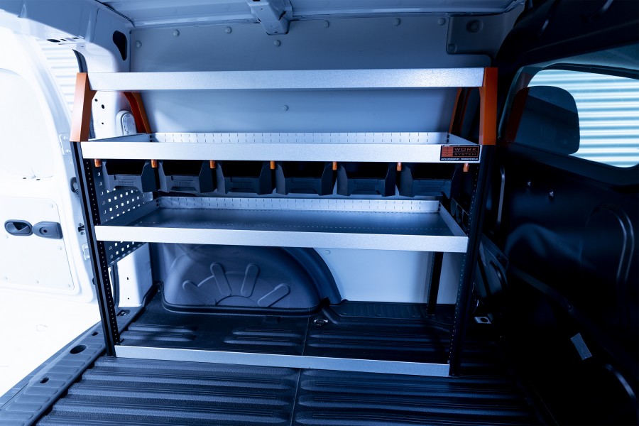 En bilinredning för dig som redan från början bestämt dig för att skapa bäst ordning och reda i din Mercedes Citan Lång, Nissan NV250 L1 & Renault Kangoo Express. I denna inredning ingår 6 st av våra nya, smarta modulbackar. Du kan smidigt dra ut dessa på våra modulbacks-skenor. Dessa är även smidiga att justera och flytta längs med hyllorna. Självklart ges det bra förvaringsmöjligheter även för dina verktygsväskor, maskiner och material då de djupa hyllorna är 420mm.