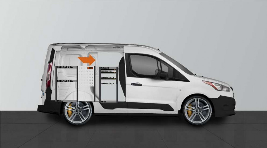 Med mix av lådor och hyllor är detta en mycket populär bilinredning som passar Ford Connect L2.