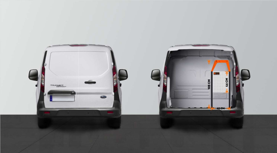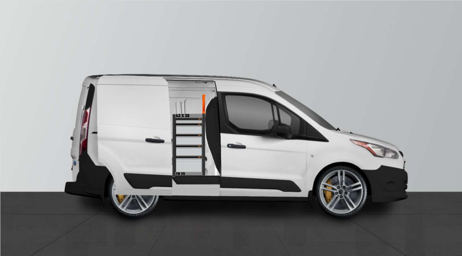 Detta är ett av de mest populära systemen till Ford Connect L1 med sidodörr på inredningens sida. Inredningen ger bra förvaringsmöjligheter för såväl verktygsväskor och maskiner som det mindre sortimentet. Du får en lådhurts med 5st lådor i varierande storlekar för att ge var sak sin plats. Bakom lådorna är en verktygstavla placerad för extra hängmöjligheter i bilen. Lådorna på kullagerskenor kompletteras ofta med våra nya lådinsatser och avdelare för att skapa bästa struktur. Att komplettera gaveln med vår smartbox är också ett populärt alternativ för att maximera förvaringsutrymmet.