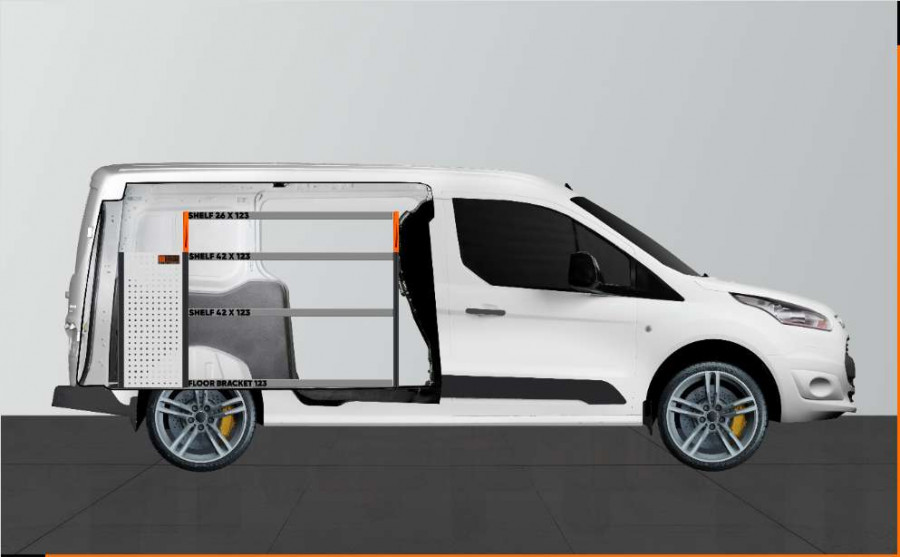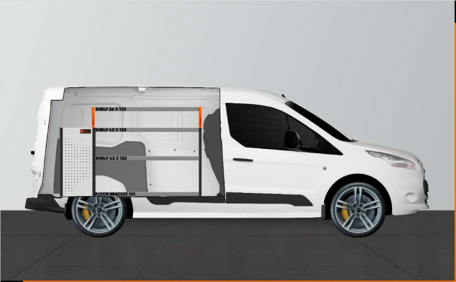 En inredning för dig som smidigt vill ha tillgång till mycket lådor. Denna bilinredning till Ford Connect L2, ger också bra möjligheter att förvara dina verktygsväskor, maskiner och ditt mindre sortiment i inredningens hyllor. Hyllorna går att komplettera med såväl hyllavdelare som våra smarta modulbackar. Modulbackarna finns i olika storlekar för att passa just dina behov.