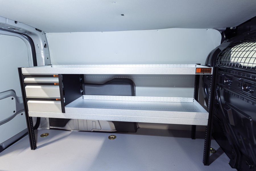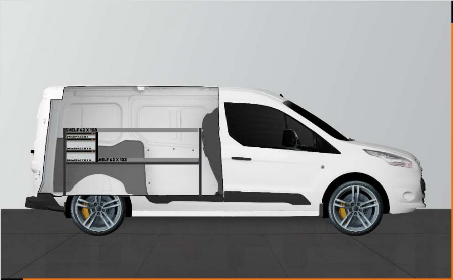 En enklare lösning av vår populära serviceinredning med både lådor och hyllor till Ford Connect L2.