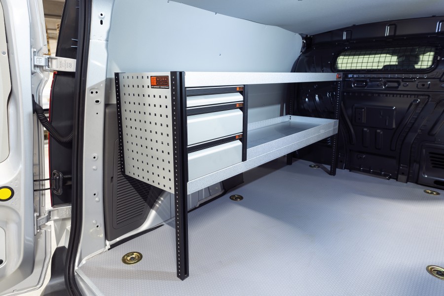 Ett priseffektivt alternativ för dig som har ett enklare behov av förvaring och vill ha en kombination av lådor på kullagerskenor men även hyllor till din Ford Connect L2. Inredningen är 420mm djup vilket gör att de flesta av marknadens verktygsväskor passar perfekt. Lådorna är populära att komplettera med våra lådinsatser och avdelare vilka ger dig bra möjligheter att skapa ordning och reda för ditt mindre sortiment.