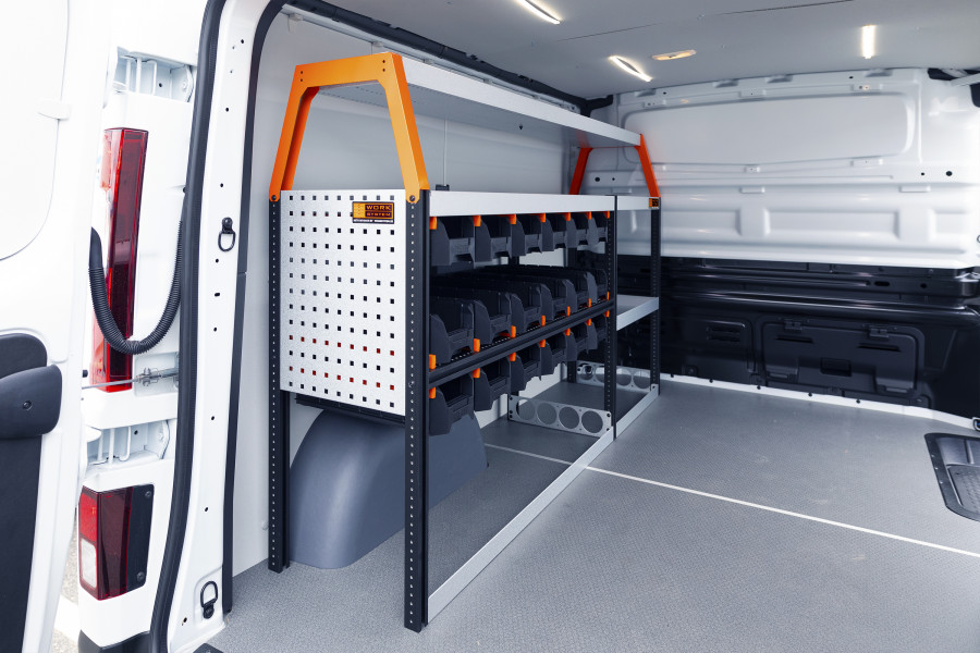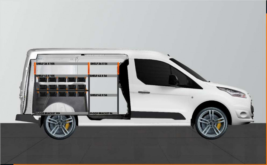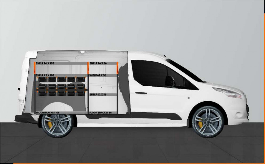 RACK är en ny, branschledande bilinredning till Ford Connect L2. Den passar perfekt för dig som behöver bra förvaringsmöjligheter för ditt sortiment så som skruv, kopplingar, bultar, borr med mera. Inredningen är maximerad med totalt 15 av våra nya, avdelningsbara modulbackar. Modulbackarna dras ut på fastmonterade skenor vilket ger smidig åtkomst. Fronten på modulbackarna är utformad för optimal tillgänglighet och går att komplettera med transparent front och tvärsgående mellanväggar som går att sätta efter varje 60mm.