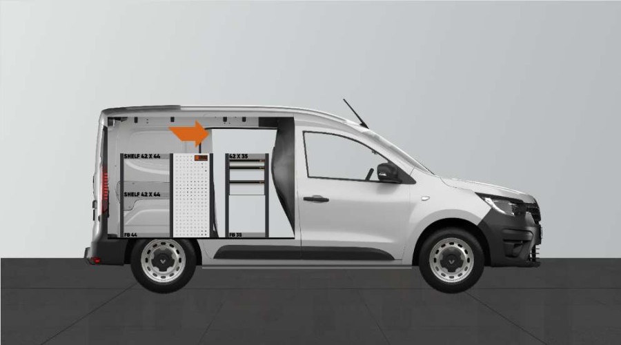 En av de mest populära inredningarna till Dacia Dokker & Renault Express L1. Inredningen ger varierande förvaringsmöjligheter då lådorna på kullagerskenorna ger smidig åtkomst via sidodörren samtidigt som lådorna kan dras ut i färdriktningen för att ge en bra överblick. Dessa går att komplettera med lådavdelare för att maximera strukturen bland det mindre sortimentet. Våra djupa hyllor ger även bra förvaringsmöjligheter för såväl verktygsväskor som mindre maskiner. Fördelad lastvikt i lådorna på kullagerskenor är 35kg/st. Lådornas innermått är (mm) B:308, D:387, H:60 och H:130.