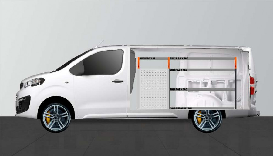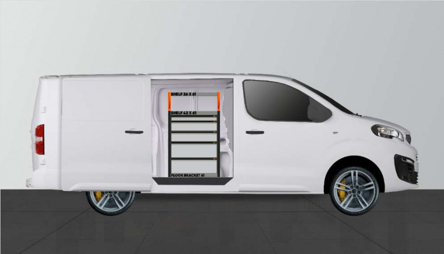 Med denna bilinredning får du mycket förvaring i både hyllor och lådor passande Expert, Jumpy, Vivaro, Scudo & ProAce.