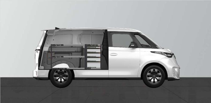 Detta är ett av de mest populära systemen till VOLKSWAGEN ID BUZZ L1. Inredningen ger bra förvaringsmöjligheter för såväl verktygsväskor och maskiner som det mindre sortimentet. Du får en lådhurts med 5 st lådor i varierande storlekar för att ge var sak sin plats. Lådorna på kullagerskenor kompletteras ofta med våra nya lådinsatser och avdelare för att skapa bästa struktur. Att komplettera gaveln med vår smartbox är också ett populärt alternativ för att maximera förvaringsutrymmet.