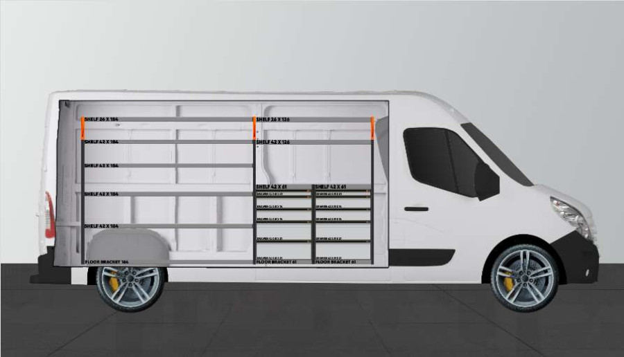 Är du på jakt efter en inredning med mycket lådor? Ställer du dessutom stora krav på inredningen? Då är detta det perfekta alternativet för dig och din Opel Movano, Renault Master & Nissan NV400 L3. Inredningen ger bra förvaringsmöjligheter för såväl verktygsväskor och maskiner som det mindre sortimentet. Totalt ingår 10x lådor på kullagerskenor. Du får också en lådhurts med lådor av varierande storlekar för att ge var sak sin plats. Lådorna på kullagerskenor är populära att komplettera med våra lådinsatser och avdelare för att skapa bästa struktur.