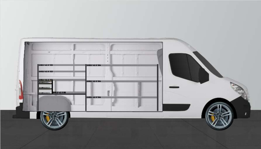 Ett priseffektivt alternativ för dig som har ett enklare behov av förvaring och vill ha en kombination av lådor på kullagerskenor men även hyllor till din Opel Movano, Renault Master & Nissan NV400. Inredningen är 420mm djup vilket gör att de flesta av marknadens verktygsväskor passar perfekt. Lådorna är populära att komplettera med våra lådinsatser och avdelare vilka ger dig bra möjligheter att skapa ordning och reda för ditt mindre sortiment.
