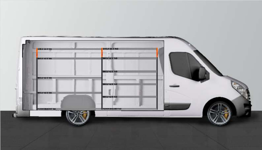 Med vår bilinredning BASE42 får du gott om förvaring i din Movano, Master & NV400 L3.