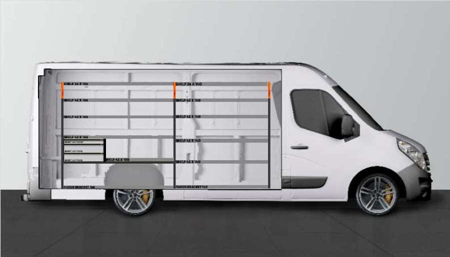 Detta är en av våra mest populära bilinredningar till Opel Movano, Renault Master & Nissan NV400. LS3-inredningen används av såväl fastighetsskötare som servicetekniker, elektriker, VVS:are och snickare. Inredningen ger bra förvaringsmöjligheter för både verktygsväskor, maskiner, förbrukningsmaterial och ditt minsta sortiment. Lådorna kompletteras ofta med våra lådinsatser och avdelare medan gaveln är populär att komplettera med vår smartbox för att maximera förvaringsutrymmet.