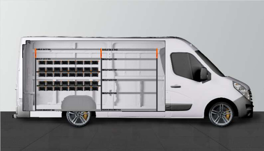 RACK är en ny, branschledande bilinredning till Opel Movano, Renault Master & Nissan NV400 L3. Den passar perfekt för dig som behöver bra förvaringsmöjligheter för ditt sortiment så som skruv, kopplingar, bultar, borr med mera. Inredningen är maximerad med totalt 40 av våra nya, avdelningsbara modulbackar. Modulbackarna dras ut på fastmonterade skenor vilket ger smidig åtkomst. Fronten på modulbackarna är utformad för optimal tillgänglighet och går att komplettera med transparent front och tvärsgående mellanväggar som går att sätta efter varje 60mm.