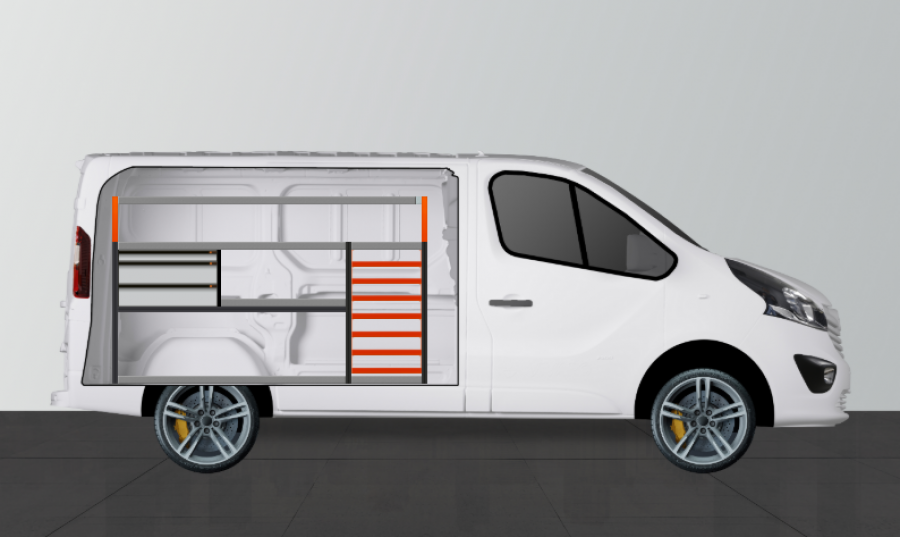 Bilinredning V-S2 för Fiat Talento, Nissan NV300, Opel Vivaro, och Renault Traffic L1H1 modell