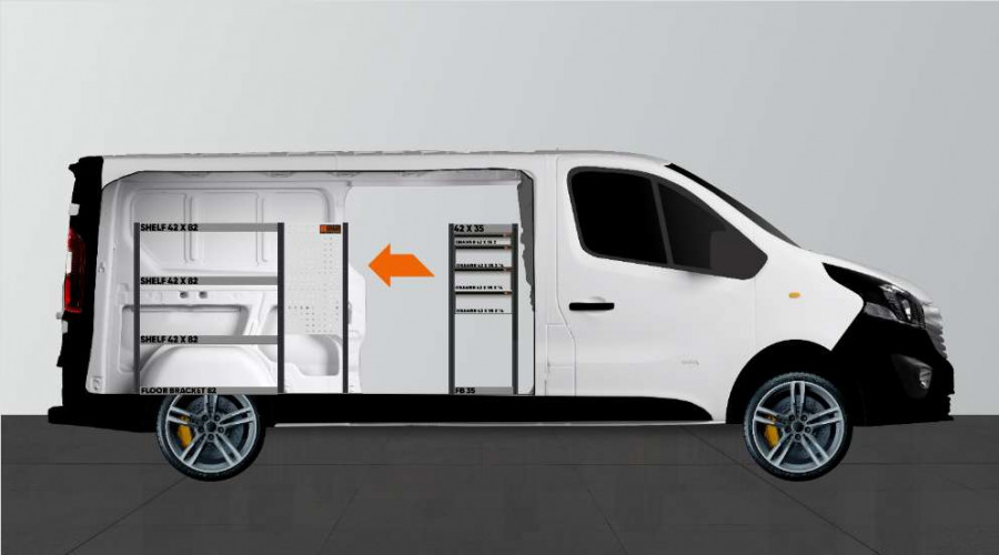 En av de mest populära inredningarna till Nissan NV300, Renault Trafic & Fiat Talento L2. Inredningen ger varierande förvaringsmöjligheter då lådorna på kullagerskenorna ger smidig åtkomst via sidodörren samtidigt som lådorna kan dras ut i färdriktningen för att ge en bra överblick. Dessa går att komplettera med lådavdelare för att maximera strukturen bland det mindre sortimentet. Våra djupa hyllor ger även bra förvaringsmöjligheter för såväl verktygsväskor som mindre maskiner. Fördelad lastvikt i lådorna på kullagerskenor är 35kg/st. Lådornas innermått är (mm) B:308, D:387, H:60 och H:130.