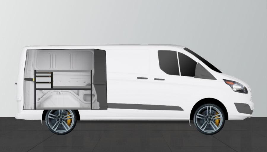 Populär serviceinredning med både lådor och hyllor som passar Ford Transit Custom L1H1.