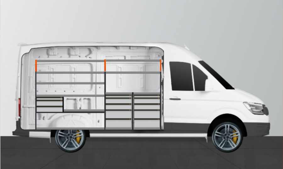 Med en mix av lådor och hyllor är detta en mycket populär bilinredning som passar Expert, Jumpy, Vivaro, Scudo & ProAce L2.