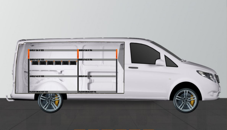 Bilinredning med enkel hyllförvaring som passar Vito Extra Lång