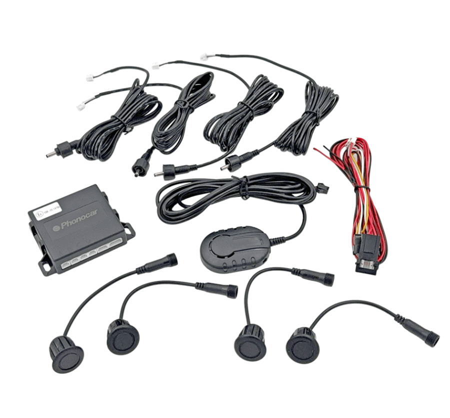 Parkeringssensor med 4 sensorer för bakre stötfångaren. Parkeringssensorn passar de flesta personbilar och lätta skåpbilar med 12V elsystem och stötfångare i plast. Funktionen baseras på 3:e generationens ultraljudteknologi för att detektera hinder. Som tillbehör finns en display med avståndsindikeringar.