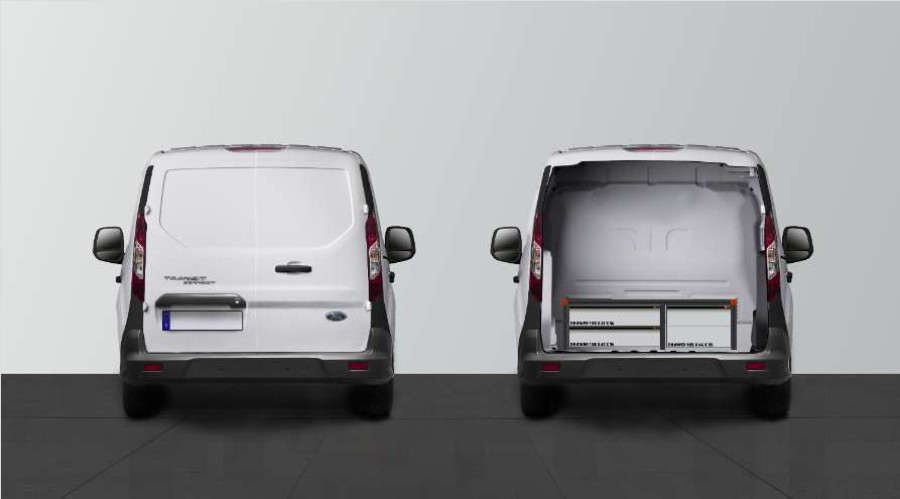 Dubbelgolv H:342mm 4-lådor till Ford Connect L1 3-Sits