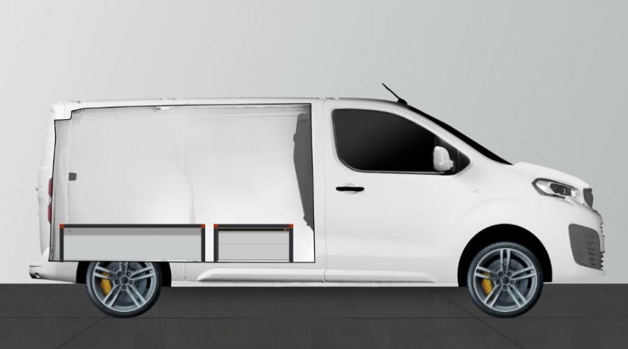 Dubbelgolvet passar Peugeot Expert L2, Opel Vivaro L2 2020-, Citroën Jumpy L2, Fiat Scudo & Toyota ProAce Medium med Prefencevägg.