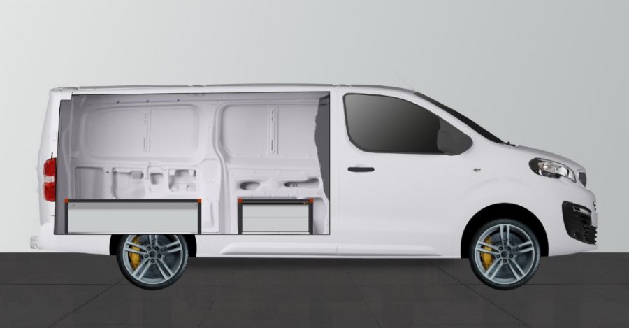 Dubbelgolv H:342mm 3-lådor till Expert, Vivaro 2020-, Jumpy, Scudo & ProAce L3 med Prefencevägg