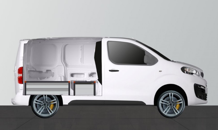 Dubbelgolv H:342mm 4-lådor till Expert, Vivaro 2020-, Jumpy, Scudo & ProAce L1 med Prefencevägg