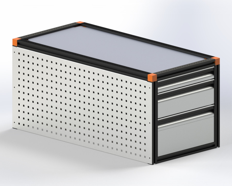 Tack vare de långa utdragbara lådorna får man en god översikt över sitt material & sina verktyg samtidigt som allt ligger dolt och säkert.